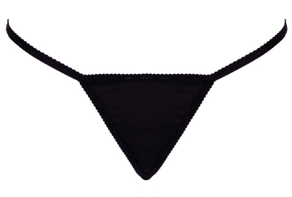 Lujoso tanga negro de Cottelli LINGERIE con parte delantera de suave material elástico y accesorios dorados. El triángulo de tiras de la parte trasera está elaborado con brillantes strass. Los tirantes elásticos de la cintura se pueden ajustar a los lados.