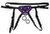Strap-on-bälte av konstläder inklusive tre ringar med olika diametrar på 4, 4,5 och 5 cm. Lila/svart. Maximalt omfång: höft 134 cm, ben 82 cm. Material: Kloroprenkautschuk (banden), polyester (harness), nitrilkautschuk (ringar), koppar/zinkplätterad metall (nitar).