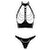 Zwart Level vinyl setje met een open topje en string. In glanzend zwart met zilverkleurige accessoires en kettingen. Korte, borst- en rugloze halternektop met beugelcups. Verstelbare gespsluitingen aan de zijkant. Verstelbare borstriem aan de voorkant op de kraagring. 3 kettingen over elk van de blootgestelde borsten. Verstelbare haaksluiting op de rug en op de halternek kraag. Bijpassende vinyl string ook met ketting en ringen aan de voorkant. Stretchbandjes aan de zijkanten zorgen voor een comfortabele, stevige pasvorm.