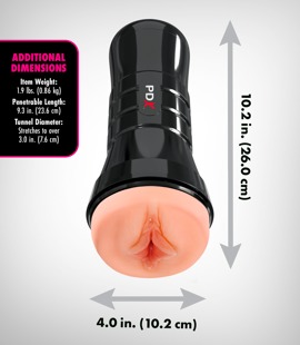 Für den schlüpfrigen Spaß mit den Wet Pussies Super Luscious Lips XXL von PDX Extreme braucht es kein Gleitmittel. Der Masturbator in detaillierter Vagina-Optik wird nur mit ein wenig Wasser benetzt! So wird das hautähnliche elastische Fanta-Flesh-Material schön geschmeidig und vermittelt ein sehr realistisches Gefühl. Dazu massieren aufregende Strukturen im Inneren beim Handjob intensiv. Mit der Suction Control im hinteren Deckel kann zusätzlich die Saugwirkung gesteuert werden. Der Masturbator liegt dabei mit seinem griffigen Gehäuse perfekt in der Hand.