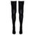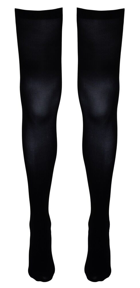 Calze autoreggenti nere (Overknee) senza rinforzo di silicone nella balza. Non trasparenti con appariscente cucitura di rete. 100% poliammide.