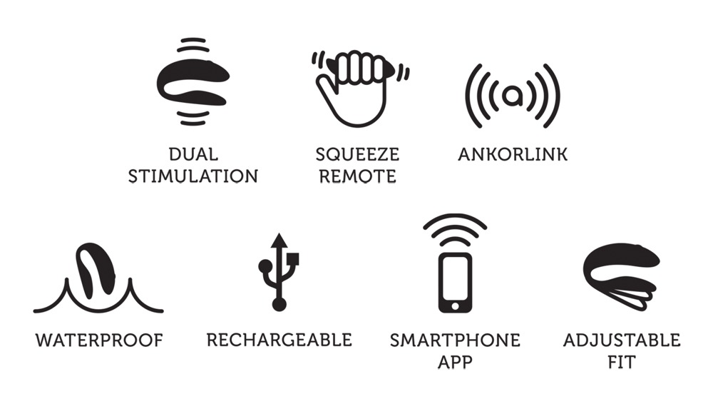 10 abwechslungsreiche Vibrationsmodi sind mit der Fernbedienung bequem steuerbar. Dank Squeeze-Funktion reagiert die Fernbedienung intuitiv auf Druck – je fester man drückt, desto stärker die Vibration. Der Chorus selbst verfügt über berührungsempfindliche Sensoren (Touch Sense), die während des Liebesspiels die Vibrationen über Körper- bzw. Fingerbewegungen anpasst. Mit der kostenlosen We-Vibe-App auf dem Smartphone sind noch mehr Vibrationsmodi, Synchronisation zu Musik und zusätzliche 3 Touch Sense Modi möglich. Ebenso kann man sich mit We-Vibe-Partnertoys verbinden und auch den Chorus über große Distanzen vom Partner fernsteuern lassen. Spaß ist überall ist möglich, denn der Chorus ist wasserdicht.