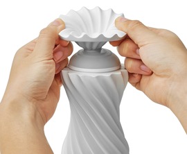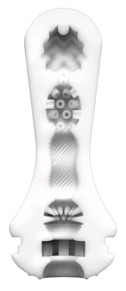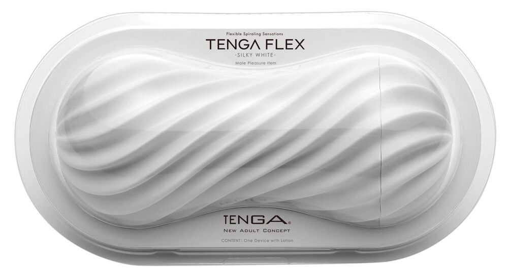 Hvit TENGA Flex som slipper penis inn i den myke og glatte, fleksible lystkanalen, hvor den lystfylt masseres i kanalens ulike strukturer og innsnevringer - omtrent slik det føles i en kvinnes vagina. I tilegg dreies det fleksible, spiralformede rillete hylsteret utvendig og det skaper unike lystfølelser. Og det er opp til deg om du holder penis i et fast grep eller heller lett, med håndarbeid til høydepunktet!
