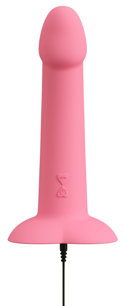 Pinkfarbener Vibrator Heart Guy Pink von You2Toys mit starkem herzförmigem Saugfuß. Puristisch schön, seidig glatt und mit prall ausgeformter stilisierter Eichel. Dazu 10 vielseitige, enorm kräftige Vibrationsmodi, die keine Wünsche offenlassen. Ganz bequem per Knopfdruck!