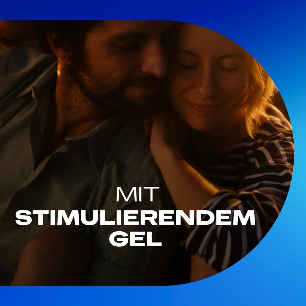 Latexkondome Durex Intense Orgasmic mit Rippen, Noppen und stimulierendem Desirex-Gel für wärmende, kühlende und prickelnde Effekte. Mit Minz-Aroma. Transparent und befeuchtet auf Silikonbasis. Im Vergleich zu herkömmlichen zylindrischen Kondomen bietet die innovative anatomische Easy-on-Form der Durex-Kondome an den richtigen Stellen etwas mehr Platz und gewährleistet so ein leichteres Anlegen und Abrollen sowie komfortablen Sitz und intensives Empfinden.