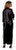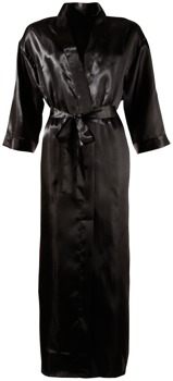 Kimono largo y negro en suave y brillante satén que modela la figura un poco más fuerte. Con cinturón. Sin bolsillos. 100% poliéster.