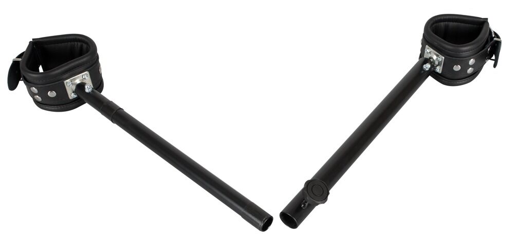 Softly padded, leather ankle cuffs that are securely attached to the adjustable metal bar. The ankle cuffs can be adjusted with the buckle fasteners. The spreader bar can be extended from 35 cm to 60 cm.