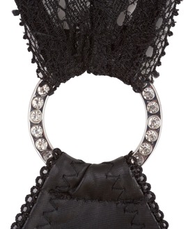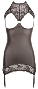 Abito intimo senza seno con inserti di pizzo nobile e un anello decorativo di strass nel décolleté. Eccitantemente scintillante, piacevolmente elastico e dalla vestibilità assolutamente sicura. Cinghie e bretelle regolabili.