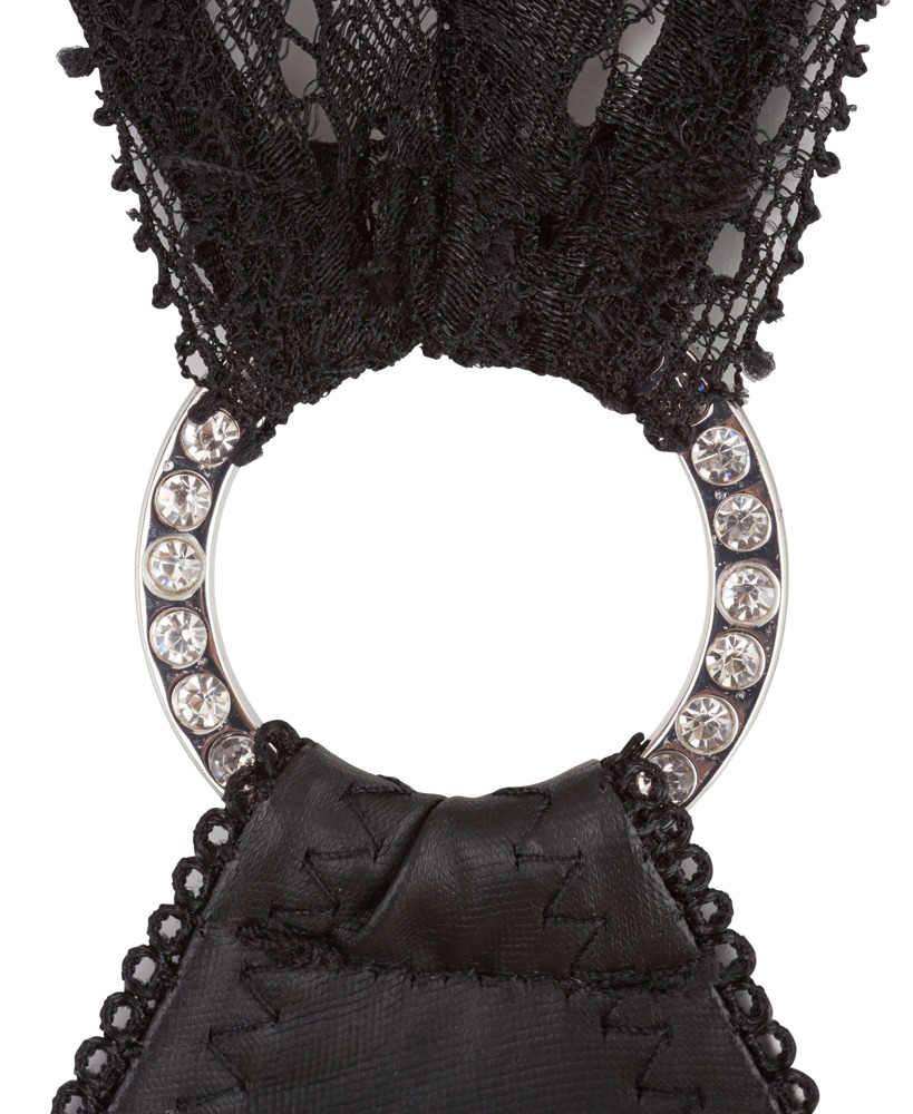 Brystfri åben cup kjole med elegante blonderindsatser og en dekorativ rhinestone-ring i spaltningen. Spændende skinnende, behageligt elastisk og absolut perfekt pasform. Justerbare stropper og stroppeholdere.