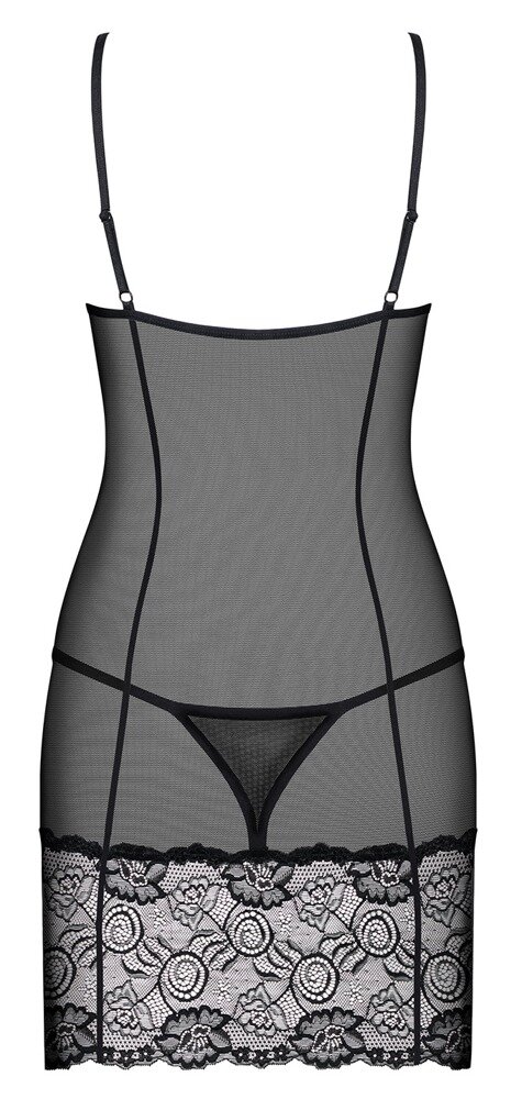This semi-transparent lingerie dress Alluria from Obsessive stands out with its lace in the cleavage area and on the hem. The straps are adjustable. A matching string is included.