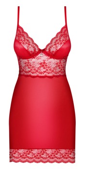 This mesmerising and bright red lingerie dress Lovica from Obsessive has lace at the front, at the back and on the hem. The straps are adjustable. A matching string is included.