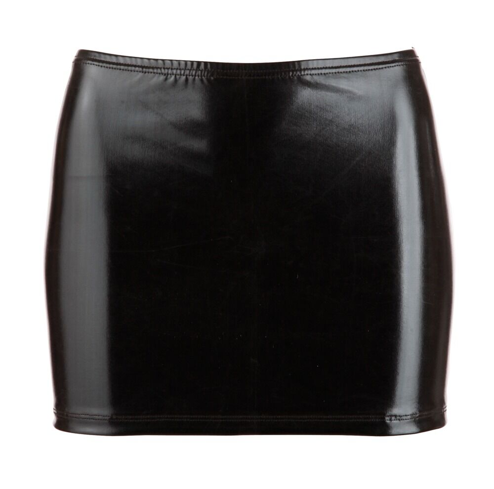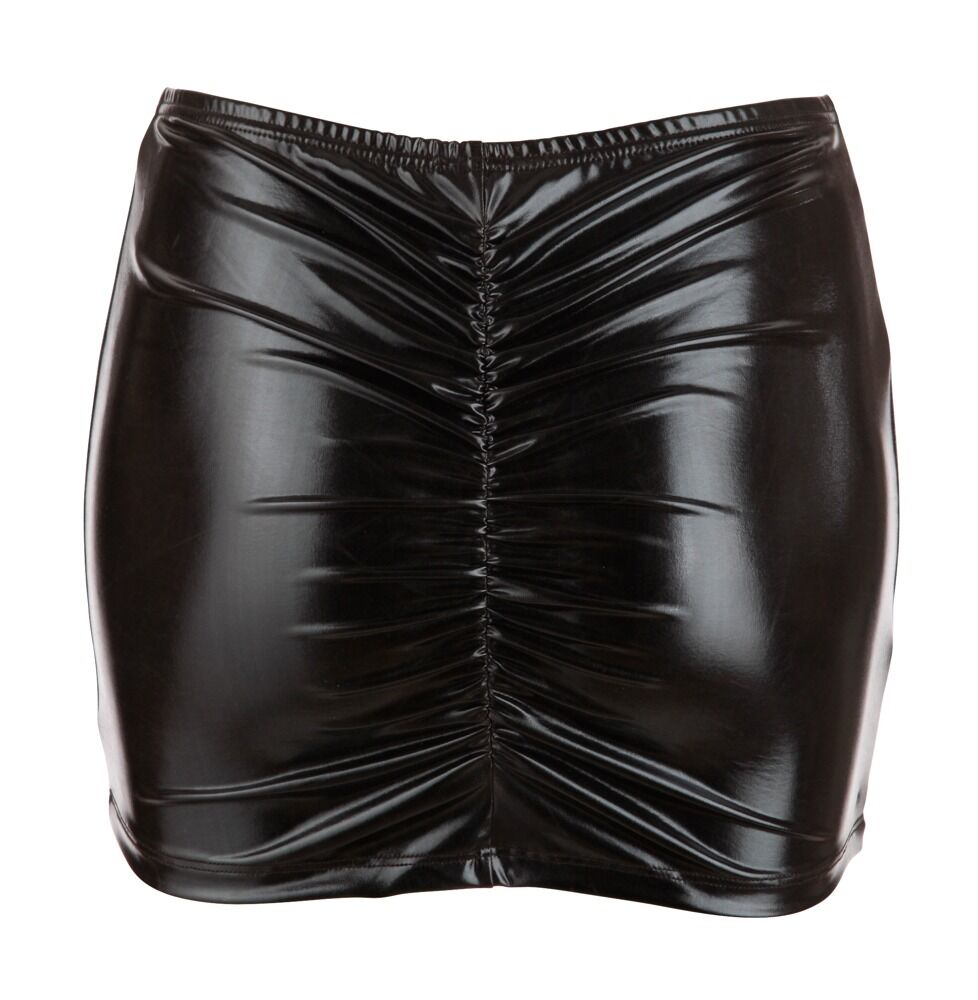 Ta mini spódniczka od Cottelli Party w modnym czarnym kolorze wet look doskonale eksponuje pośladki dzięki marszczeniu z tyłu. Seksowna podstawowa spódnica do wielu stylizacji.