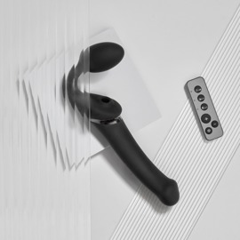 The Multi Orgasm Bendable Strap-On from Strap-on-me provides pleasure with its vibrations and magical clitoral tongue play during versatile solo play or hot roleplay, pegging and more with a partner. The 3 powerful but quiet motors provide triple the action: the large plug and the head of the impressive shaft vibrate intensely and the small, nimble soft tongue flutters energetically. The motors can be controlled separately with the practical remote control. There are 2 x 3 vibration modes and 3 licking modes, which all have 3 intensities each, at the push of a button – perfect for varied fun. The Multi Orgasm can even be used in the bath or the shower because it is waterproof.