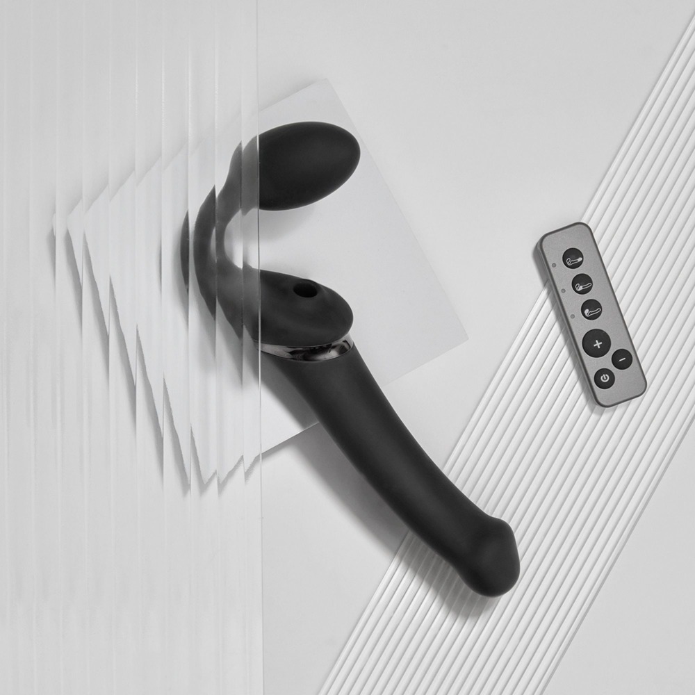 Multi Orgasm Bendable Strap-On fra Strap-on-me forkæler dig med vibrationer og magisk klitoristungespil under alsidig sololeg eller begge dele under hed rolleleg, pegging og meget mere. 3 kraftige, støjsvage motorer giver 3-dobbelt action: den svulmende plug og hovedet på det markante skaft vibrerer intenst, og den lille, smidige bløde tunge svinger energisk. Motorerne kan styres individuelt med den praktiske fjernbetjening. Med et tryk på en knap tilbyder 2 x 3 vibrationstilstande og 3 slikketilstande, hver med 3 intensiteter, varieret sjov. Selv i badet og under bruseren, for Multi Orgasm er vandtæt.