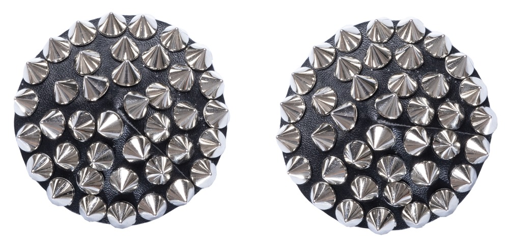 Круглые наклейки на соски от Cottelli ACCESSOIRES из стильной черной искусственной кожи с шипами. Для наклеивания - можно использовать несколько раз, если наклеить защитную пленку для хранения.