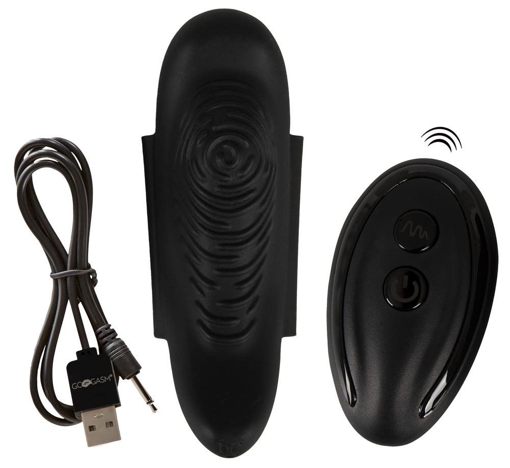 Perfekt formet, pirrestrukturert trusevibrator fra GOgasm med magnetvinger til sklisikker plassering i ei truse med smal skrittdel/kile. Det er vanskelig å holde vibratoren på plass i en boxer eller shorts. Vibratoren gir presis stimulering av klitoris og vulvaleppene. 10 vibrasjonsmodus justeres enkelt på den trådløse fjernkontrollen - som selvfølgelig kan håndteres av en annen. De stillegående og likevel kraftige vibrasjonene kan stimulere deg til enhver tid og uansett hvor du befinner deg, helt diskret, uten at noen merker det. Du kan til og med bruke den i vann, for den lette lille vibratoren er vanntett. Ladbar med vedlagt USB-ladeledning. Batteri (CR2032) til fjernkontroll inklusive.