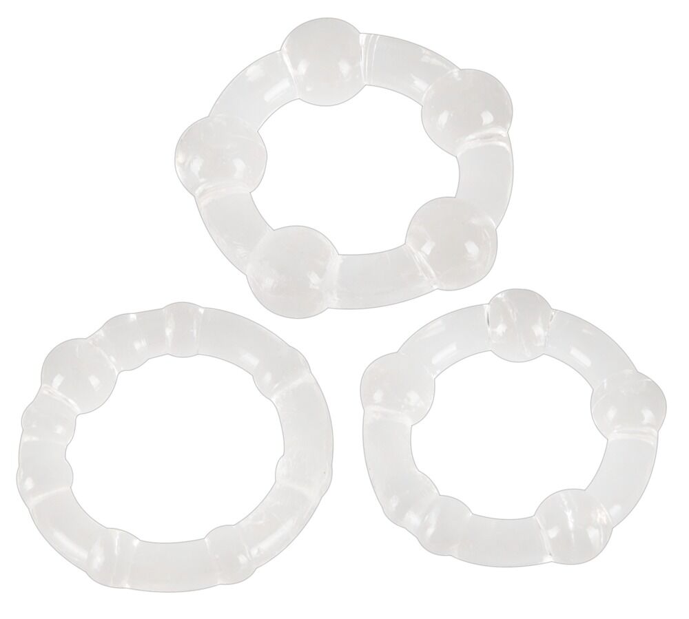 Pull this 3 rings over your penis, enjoy the feeling and the sex-power, you`ll have... Transparent-silicone with different knops. Little: Ø 3 cm, inside - Ø 2 cm. Middle: Ø 3,5 cm, inside - Ø 2,5 cm. Large: Ø 4 cm, inside - Ø 2,5 cm.