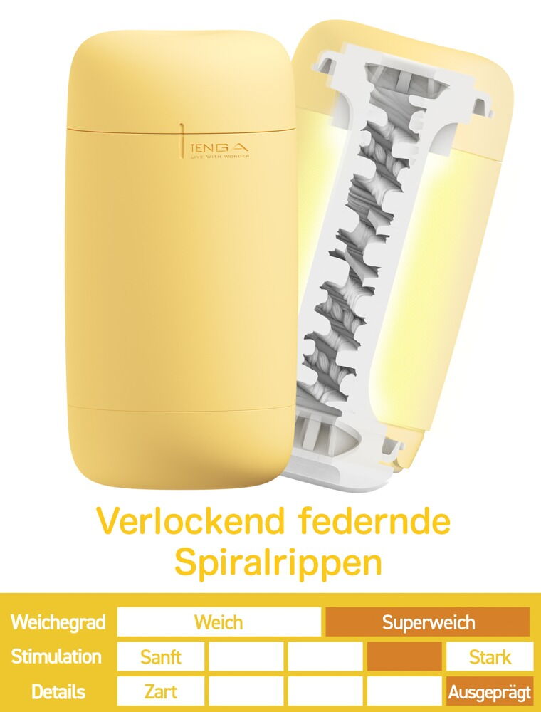 Puszysty masturbator od TENGA w pastelowym kolorze z super miękką teksturą pianki marshmallow wewnątrz, która delikatnie i miękko otula penisa. Podniecające struktury wewnątrz zapewniają intensywny masaż podczas masażu ręcznego. Silikonowy kubek wygodnie leży w dłoni i można go łatwo ścisnąć, aby uzyskać uczucie chwytania.
