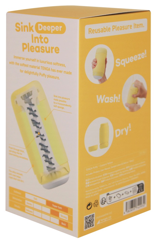 The Puffy masturbator by TENGA is in a pastel-coloured squeeze cup with a super soft marshmallow texture that surrounds the penis in a gentle and soft way. Exciting textures inside intensely massage the penis during a handjob. The silicone cup fits comfortably in the palm of a hand and can be easily squeezed for tight sensations.