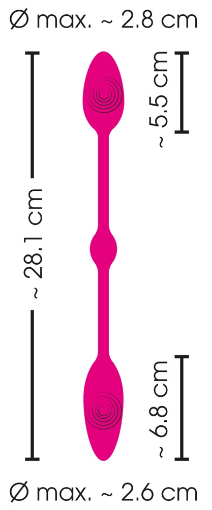 RC Double Pleasure Love Balls från Sweet Smile överraskar med 2 kraftfulla kulor som är förbundna med ett flexibelt silikonband. För en samtidig vaginal och anal stimulation. Silikonbandet sitter tätt mot mellangården så att man diskret kan använda sexleksaken under kläderna. Även ägnad för samtidig inre och yttre stimulation av vagina och klitoris.