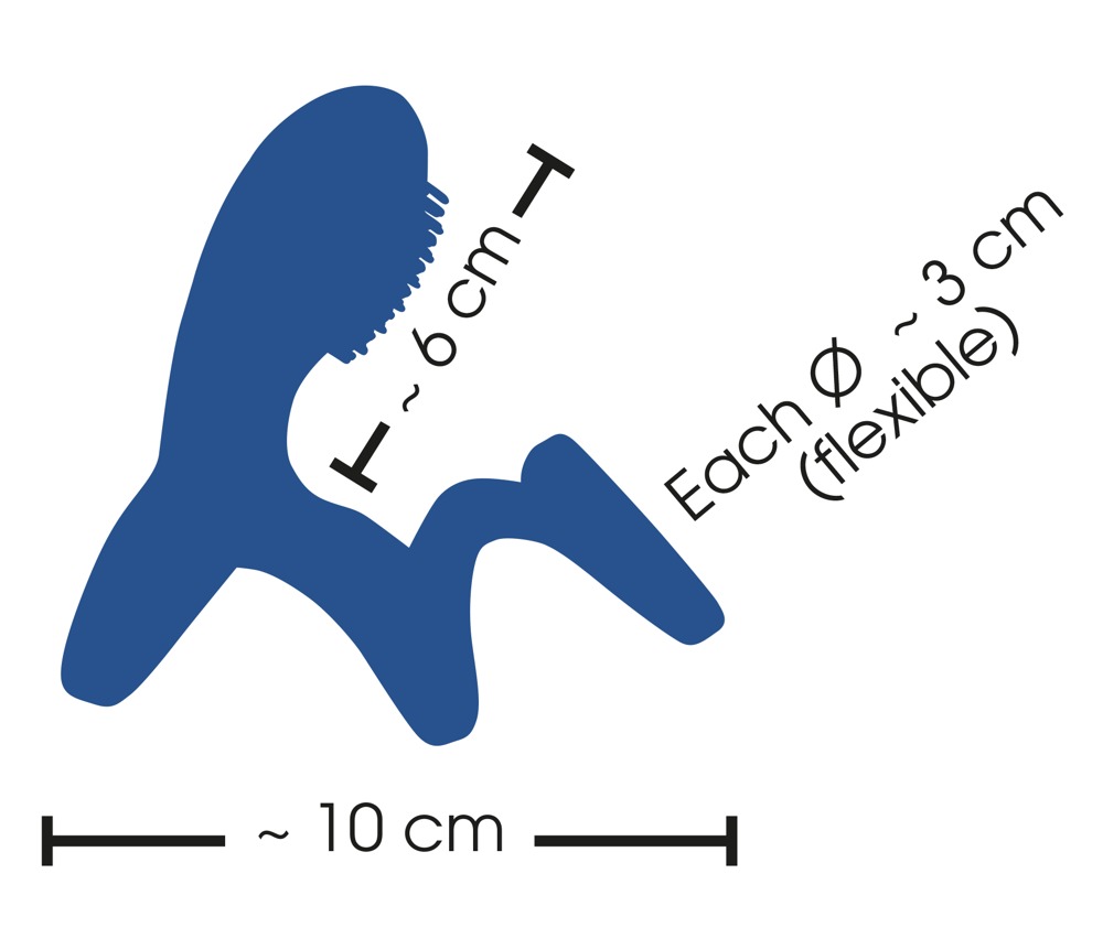 Complete length 10 cm, Ø 3 cm (flexible). Silicone with a PU coating.