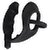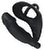 Svart penis-/pungring med anaplugg och noppad perineumstimulator. Vibration via knapptryck.