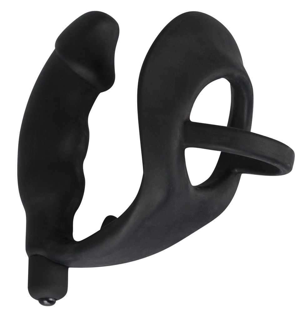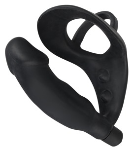 This black cock ring is absolutely amazing because it has an integrated butt plug, stimulating dots on the bar between the ring and the plug and thrilling vibrations at the push of a button. Nothing can stand in the way of hot pleasure…