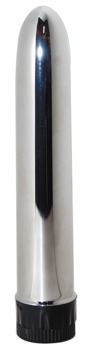 - Zilverkleurige, gladde vibrator (19 cm lang, Ø 3 cm) om alleen van te genieten of met een van de volgende opzetstukken