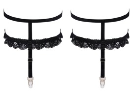 The black garters from Cottelli ACCESSORIES have removable suspender straps. They are made out of soft velvet and have silver-coloured rings and delicate lace. They are stretchy as well for a perfect fit. The suspender straps can adjusted. 1 pair.