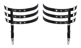 The black, triple garters from Cottelli ACCESSORIES have removable suspender straps. They are made out of soft stretchy straps that have a beautiful shine. They also have silver-coloured rings and decorative rhinestones. They are adjustable for a perfect fit. The removable suspender straps are also adjustable for a perfect fit as well.