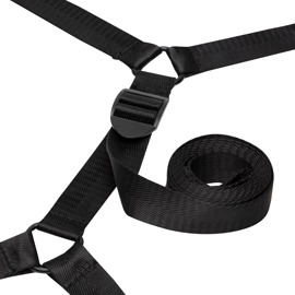 Convierte cualquier cama en un campo de juego de bondage con este juego de ataduras bajo el colchón Sweet Anticipation de Fifty Shades of Grey. La correa cruzada ajustable se adapta a cualquier colchón. Los extremos de las correas -cada uno con una anilla en D y un mosquetón- se enganchan a las sujeciones para manos y pies. Los puños de las manos y de los pies, cómodamente acolchados, pueden llevarse por ambos lados: Un lado con aspecto de cuero negro, el otro lado con satén en diseño de rosa negra/roja. Cada uno de ellos puede ajustarse con un cierre de hebilla.