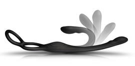 The anal vibrator and the flexible, erection-supporting rings are securely attached to each other by the perineum bar that has deep vibrations. This means that the anal vibrator can't slide in too far and is kept in place. It can also be worn over a long period of time and discreetly underneath clothing. It is covered in silicone with a velvety soft touch texture. It also has gentle dots for intense stimulation as well.
