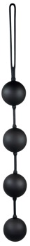 Black love ball quartet with vibrating inner balls and an elastic retraction loop. The balls are perfect for pelvic floor training. The weighted balls on the inside rotate and have a swinging effect with every move that lead to strong muscle contractions. With a weight of 108 g these balls are perfect for trained experts.