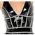 Kort halterneck-kjole fra Black Level i sort lakglans med sølvfarvede dekorative sømme i taljefremhævende korset-look. Skulderfri og rygløs, tætsiddende top med dyb décolleté, skørt med vidde udspilet. Halterneck med trykknaplukning. Ryg med trykknap og lynlås.