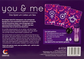 Det spændende parspil you & me med 90 innovative erotiske ideer, sexede forslag og eventyrlige aktiviteter. I dette sofistikerede spil er det lige så spændende og stimulerende at deltage som at vinde!