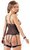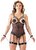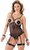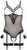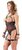 Bezpiersiowy korpus szelki w Powernet i koronka z metalowymi detalami i akcesoriami wet look. Zdejmowany (karabińczyk) łańcuch stymulujący biegnie przez całkowicie otwarte krocze. Paski regulowane, szelki regulowane i odpinane. Paski udowe połączone krótkim łańcuszkiem z odpinanymi (karabińczykowymi) kajdankami. Paski i mankiety z zapięciem na rzep. Czarny. 90% poliamid, 10% elastan; wet look 92% poliester, 8% elastan.