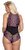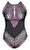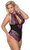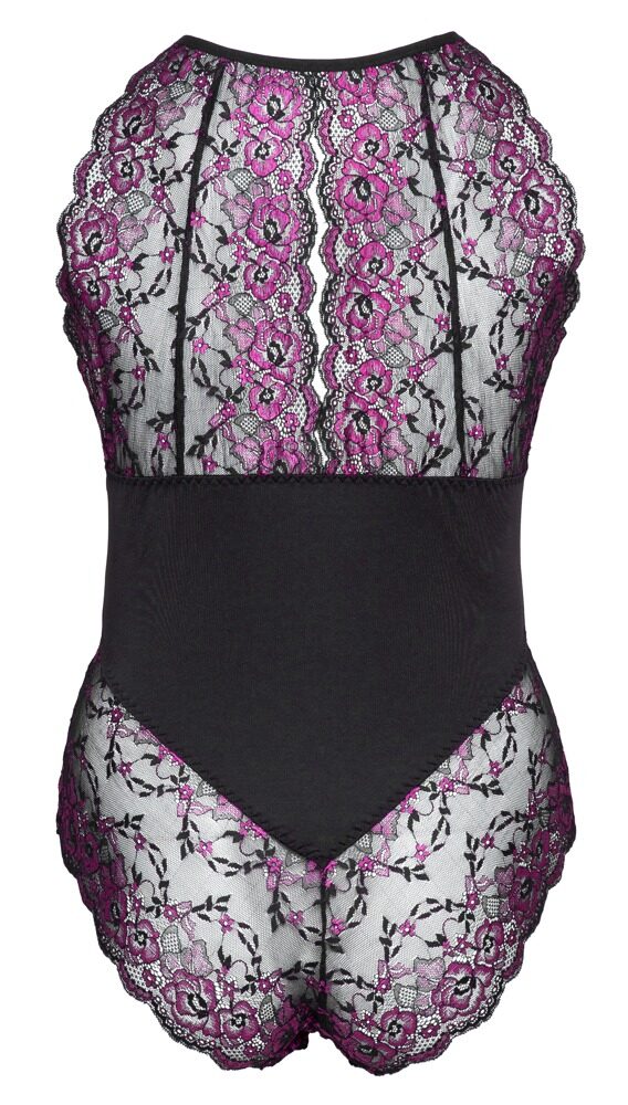 Transparent body from Cottelli CURVES made out of floral lace in two different colours. There is also an opaque insert around the waist. There is a large cut-out at the front and the back. There is a clip fastener at the front of the neck. The briefs part can be opened in an erotic way thanks to the press studs over the crotch.