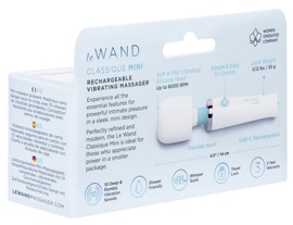 Varita de masaje de lujo Classique Mini recargable de le WAND con vibración extra potente para masajes intensos en solitario o en pareja. En un clásico, brillante y fresco color blanco y diseño ergonómico Wand. Este pequeño y ligero masajeador cabe en cualquier bolsillo y se adapta perfectamente a la mano durante los mimos. Con su cabezal de masaje móvil, favorece todas las partes del cuerpo y todos los puntos de placer externos. El cabezal de masaje, con su textura aterciopelada de tacto suave, se desliza sobre la piel como si estuviera solo y le mima con el máximo confort.