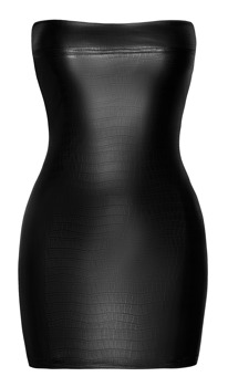 Ekstra kort kjole i wetlook fra Noir i preget krokostil. Skulderfri i stroppeløs tubefasong. Superelastisk for ettersittende effekt og perfekt komfort.