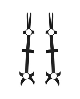 A pair of black gauntlets called Armares by Obsessive in a strap look with decorative rings and finger loops. They are soft and stretchy – from the hand to above the elbow. And are adjustable for a firm, perfect fit. A very special touch for many outfits.