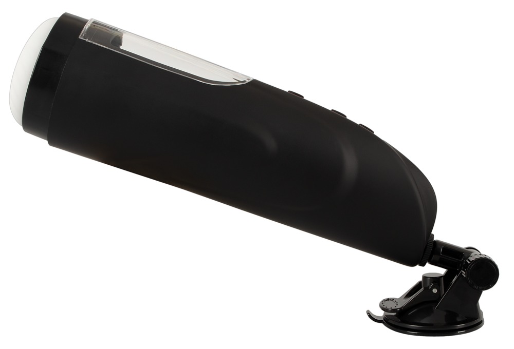 Die Stroking-Funktion ist mit der Rotation kombiniert und in 10 Modi und 2 Geschwindigkeiten steuerbar – ganz bequem per Knopfdruck direkt am handlichen Toy. Für freihändiges Vergnügen ist der beiliegende Saugfuß schnell und einfach am Masturbator montiert.