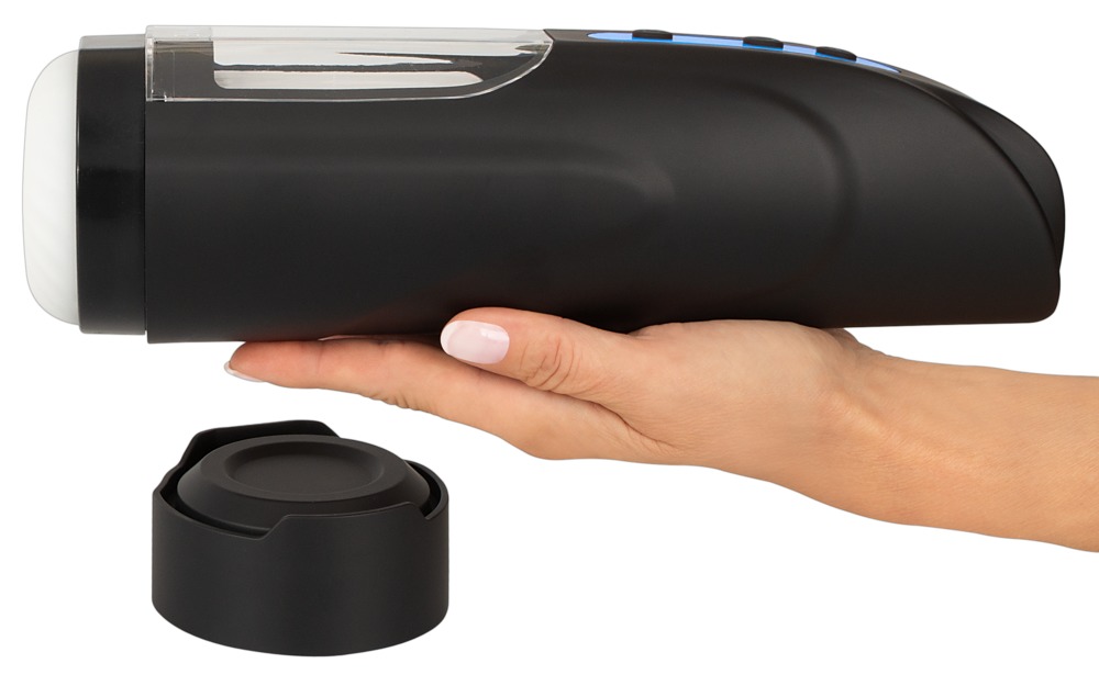 Den mjuka, elastiska hylsan i neutral design är utrustad med en massa mjuka strukturer som masserar penisen intensivt. Hylsan kan tas ut för rengöring. Masturbatorn har ett lock som skyddar mot damm och nyfikna blickar.