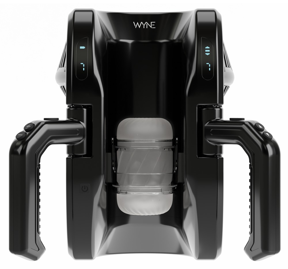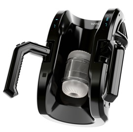 Poderoso masturbador 10 de WYNE, que masajea y mima intensamente el pene en la funda masturbadora que se mueve hacia arriba y hacia abajo, en toda su longitud de hasta 28 cm. Las prácticas asas laterales ofrecen la máxima comodidad y un manejo superfácil. Una masturbación cómoda y totalmente automática sin manos cansadas
