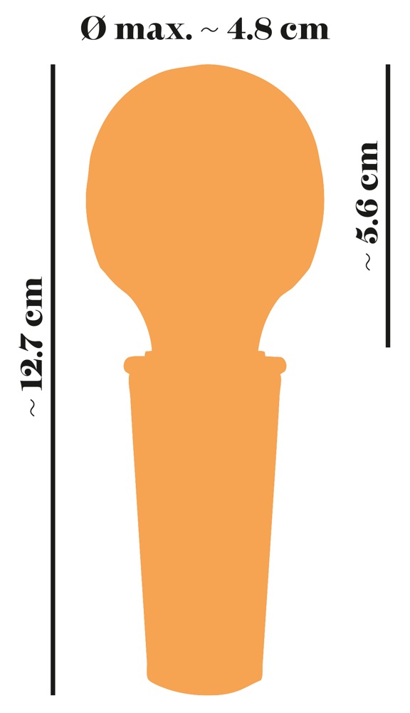 Total length 12.7 cm, massage head 5.6 cm long, Ø max. 4.8 cm.