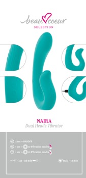 The NAIRA Dual Heads Vibrator from beau cœur impresses with its handy design, fresh colours and exciting textures. Equipped with two quiet, powerful motors (one in each head), this double vibrator stimulates internal and external pleasure spots at the same time. Whether inserted vaginally or anally, it offers versatile possibilities for exciting synchronised fun with 10 vibration modes in each motor. The modes can be easily controlled separately at the push of a button and can also be combined individually to create own personal stimulation programmes. Perfect double play for unlimited pleasure!