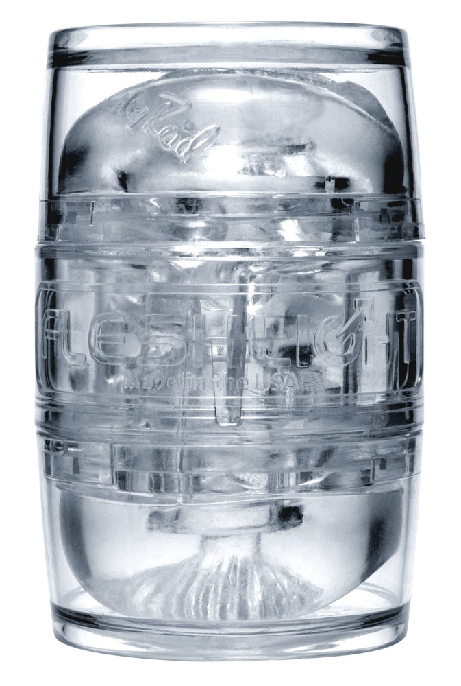 A masturbator that is open at both ends. The masturbator has a replica of erotic star Riley Reid's vagina and anus. The inside of the masturbator has a stimulating dotted and grooved texture. The case can be open at both ends and the sleeve can be removed for quick and hygienic cleaning. The openings at either end as well as the sturdy part in the middle of the sleeve means that it won't slip out of someone's hand and can also be used during a blow job too.