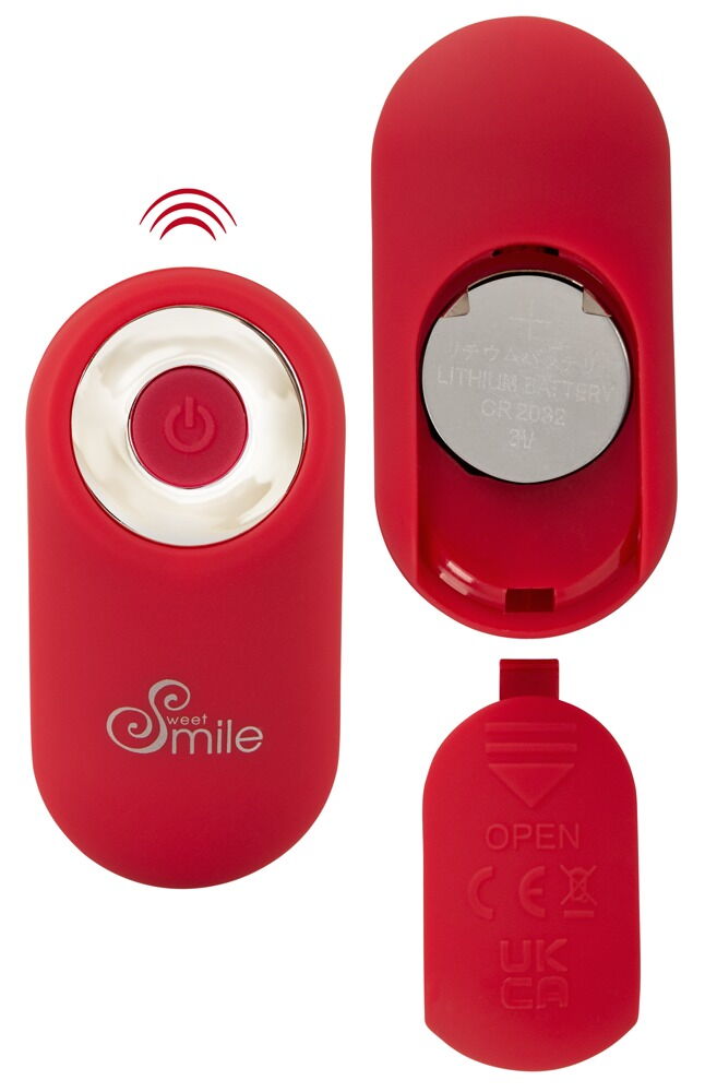 Vibratore per mutandine RC di Sweet Smile, leggero come una piuma e silenzioso, con un piccolo e forte magnete per un fissaggio antiscivolo in qualsiasi mutandina. Stimola il clitoride e la vulva in modo mirato e intenso, in qualsiasi momento e in qualsiasi luogo, in modo completamente discreto senza che nessuno se ne accorga!
