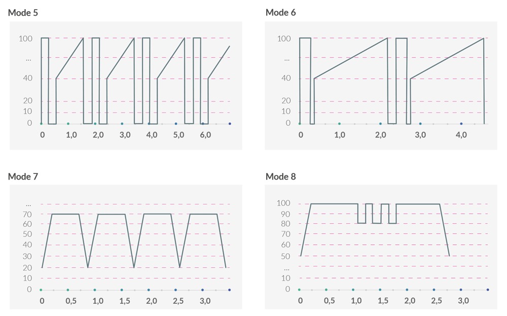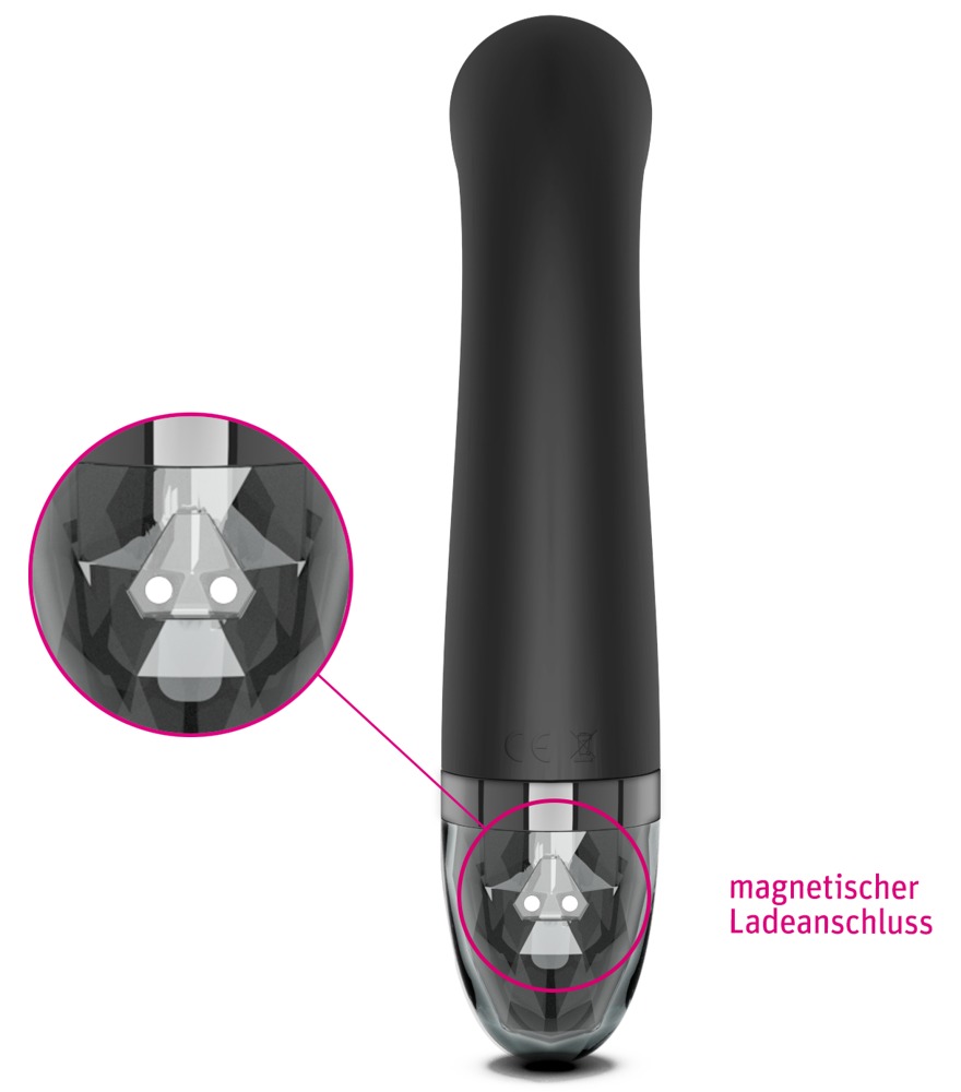8 vibrasjonsmodus og 5 E-Stimmodus gir variasjonsmuligheter under samtidig inn- og utvendig stimulering. I tillegg har vibratoren et ekstra pirrestrømsprogram for perfekt trening av bekkenbunnsmuskulaturen. Alle funksjoner justeres enkelt per tastetrykk på vibratoren - kombinert eller separat.