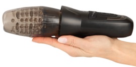The transparent, smoke-coloured cup is made out of stretchy, skin-like TPE material and softly caresses the penis for a deceptively realistic feeling. The cup can be removed from the masturbator for cleaning.