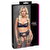 Czarny komplet do pończoch od Cottelli LINGERIE z biustonoszem na fiszbinach, pasem do pończoch, stringami i stylowymi podwiązkami. Wykonany z delikatnej, elastycznej koronki, podwiązki wykonane z miękkich elastycznych taśm. Biustonosz na fiszbinach z pół miseczkami, zwieńczony koronką z uwodzicielskimi wycięciami. Ramiączka biustonosza i zapięcie na haftki z tyłu są regulowane. Podobnie jak zapięcie na haftki z tyłu pasa do pończoch i łącznie 8 pasków do pończoch (6 z przodu, 2 z tyłu). Stringi uwodzą otwartym przodem.